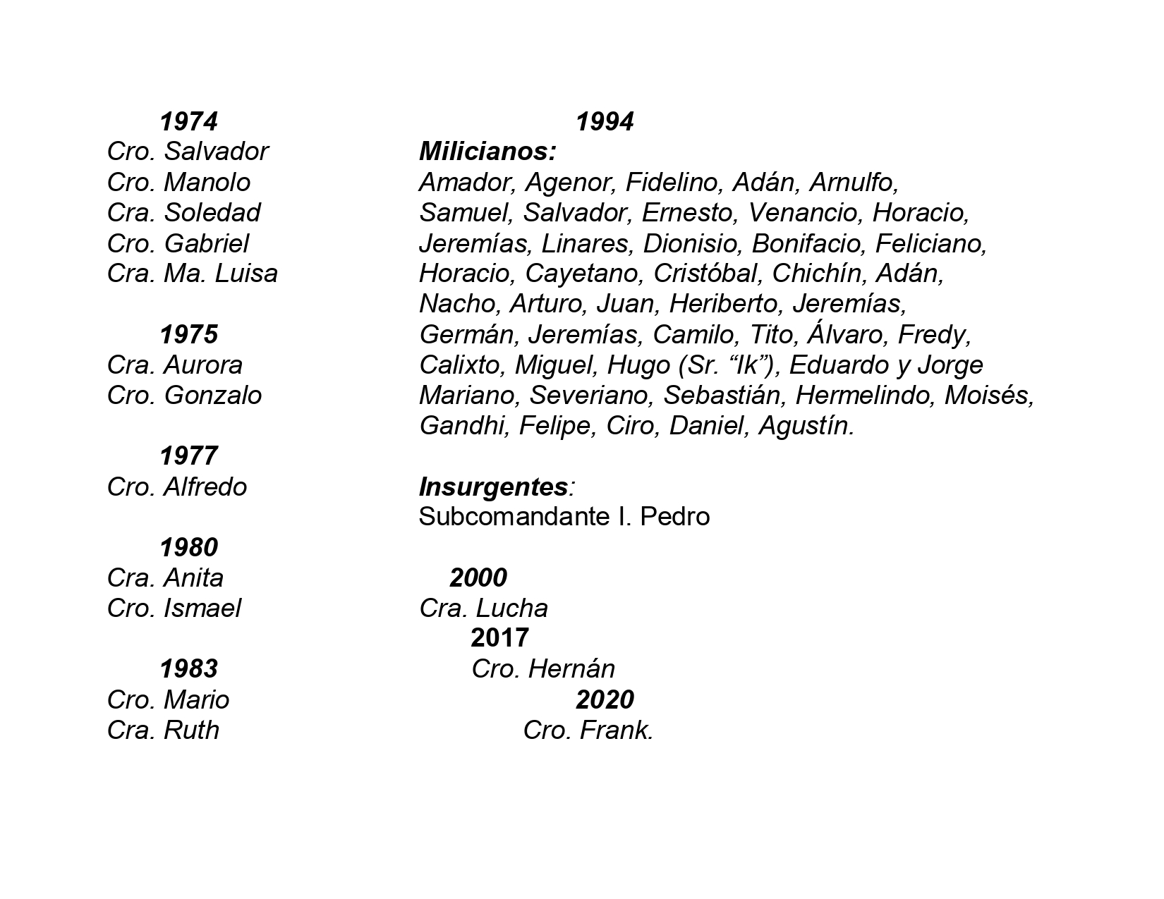 En 1974, inmediatamente después del asesinato de los combatientes en Nepantla, una horda de militares, policías judiciales y ministeriales se dirigió al Rancho “El Chilar” Chiapas, para desaparecer a siete compañeros más de la organización: seis hombres y una mujer.