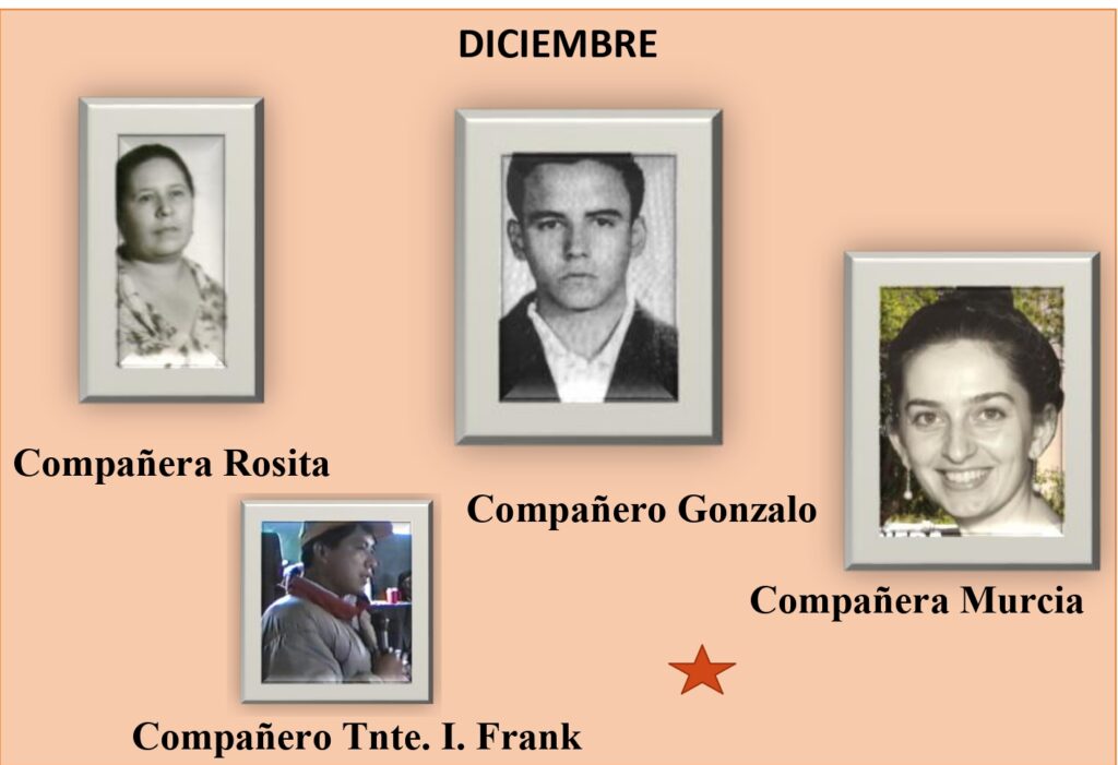 Recordamos a la compañera Rosita, madre del Primer Responsable de la organización, Cesar Yáñez Muñoz y a nuestro compañero nacido un 30 de diciembre, el Teniente I. Frank, Primer Comisario Político en las montañas del sureste mexicano y fundador (junto a otros compañeros) del EZLN en noviembre de 1983. Un 31 de diciembre nació el compañero Gonzalo (Pacha), fundador de nuestra organización y asesinado por el Ejército Mexicano en Cárdenas, Tabasco.