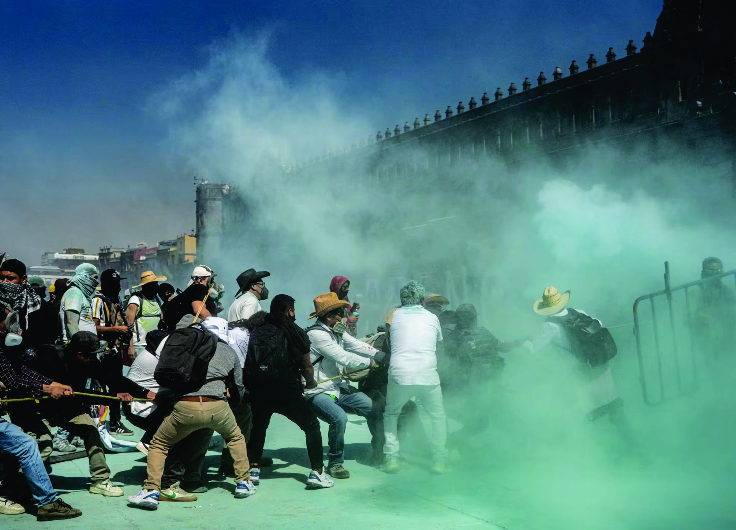 Pronto se vio que la arremetida de los encapuchados del llamado Bloque Negro contra las vallas que rodean Palacio Nacional y los policías atrincherados (con un saldo de 120 heridos y 40 detenidos), era réplica de un plan aplicado en otros países para derribar gobiernos no alineados a la agenda imperialista, pues los agresores llegaron preparados con sierras eléctricas, esmeriles, escaleras, cuerdas, sopletes, ganzúas, martillos y marros.