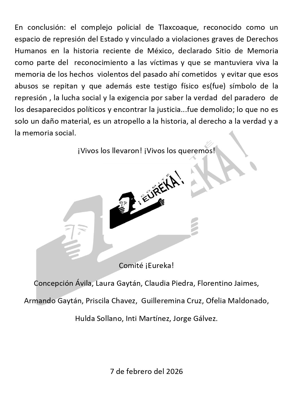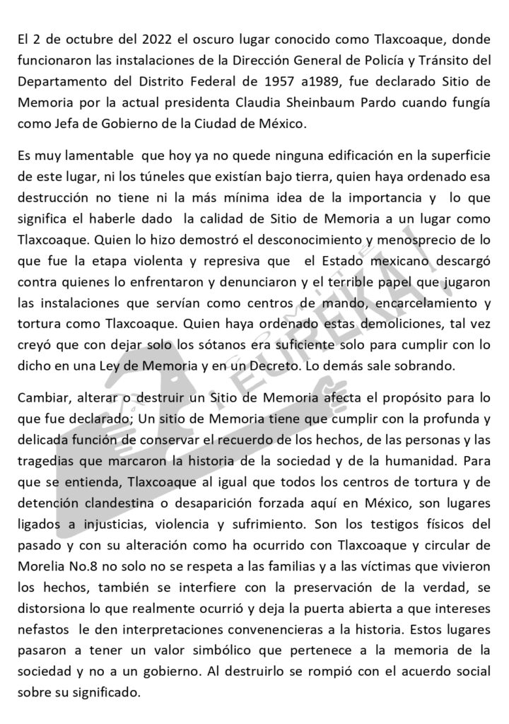 Las violaciones a los derechos humanos que realizaba la policía en el edificio de siniestra memoria, son una evidencia de la sangrienta represión del Estado que el pueblo debe mantener presente para que no se repita en el futuro. Pero la demolición de la torre principal del conjunto arquitectónico y el ocultamiento de sus archivos, se convirtió en una obra de despojo al derecho a la memoria de las víctimas directas e indirectas de régimen opresor, durante el mandato del presidente Miguel de la Madrid, quien dio la orden del desmantelamiento y destrucción del sitio.